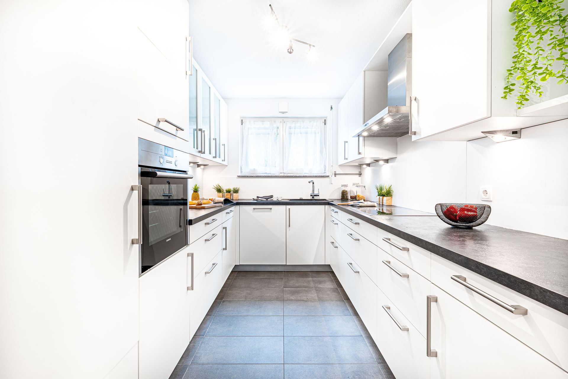 Bereits im Eingangsbereich zeigt sich die durchdachte Planung. Neben der Haustüre befindet sich nicht nur ein Gäste-WC, sondern ein vollwertiges Bad mit Dusche. Der Flur führt weiter in den großzügigen Wohn- und Essbereich mit angrenzender Küche. Hier bilden Laminat und Fliesenböden, Kunststofffenster sowie die Einbauküche aus 2012 eine stimmige und zeitlose Grundlage. Die Terrasse mit Gartennutzung schließt direkt an den Wohnbereich an und ermöglicht entspannte Stunden im Freien bei überschaubarem Pflegeaufwand.