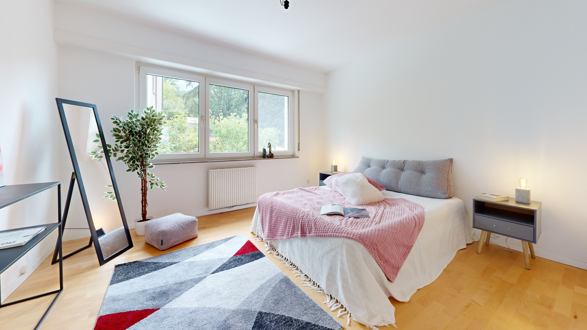 Besonders hervorzuheben ist der Balkon mit südlicher Ausrichtung – ein idealer Ort, um den Ausblick zu genießen oder einfach etwas frische Luft und Sonne zu tanken. Der gemeinschaftliche Garten hinter dem Haus steht allen drei Parteien zur Verfügung und bietet nicht nur Platz für Erholung, sondern auch das Gefühl von zusätzlichem Freiraum mitten in der Stadt.